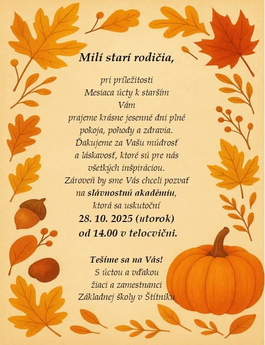 Pozvánka - 28.10.2025 slávnostná akadémia pri príležitosti Mesiaca úcty k starším