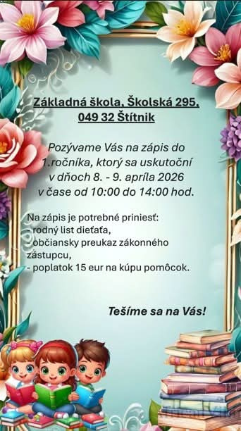 POZVÁNKA - 8.- 9.4.2026 zápis do 1. ročníka