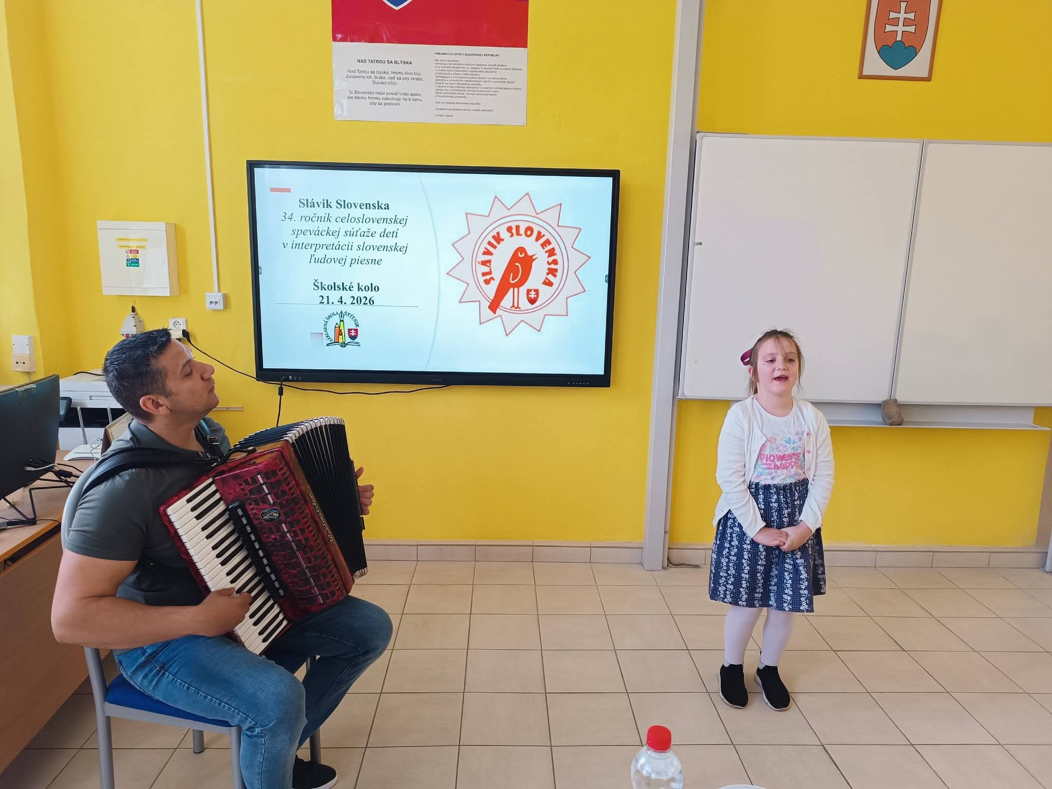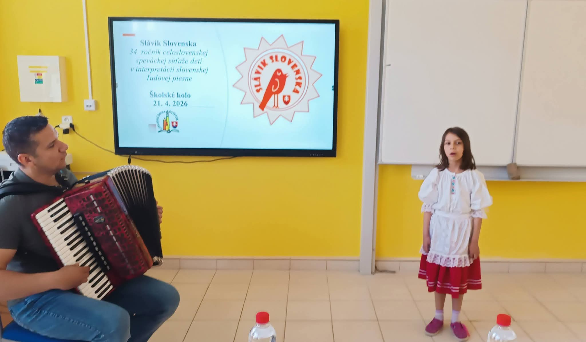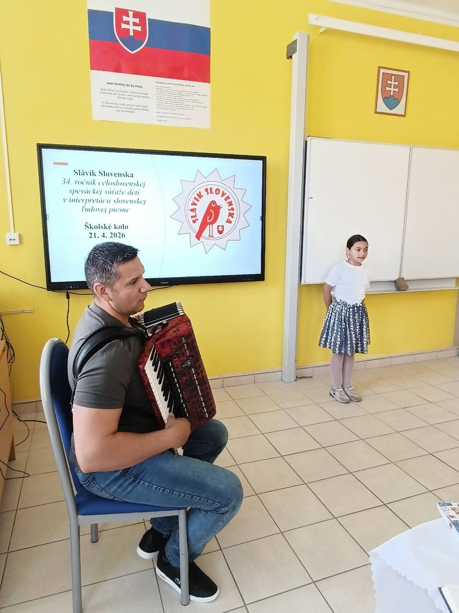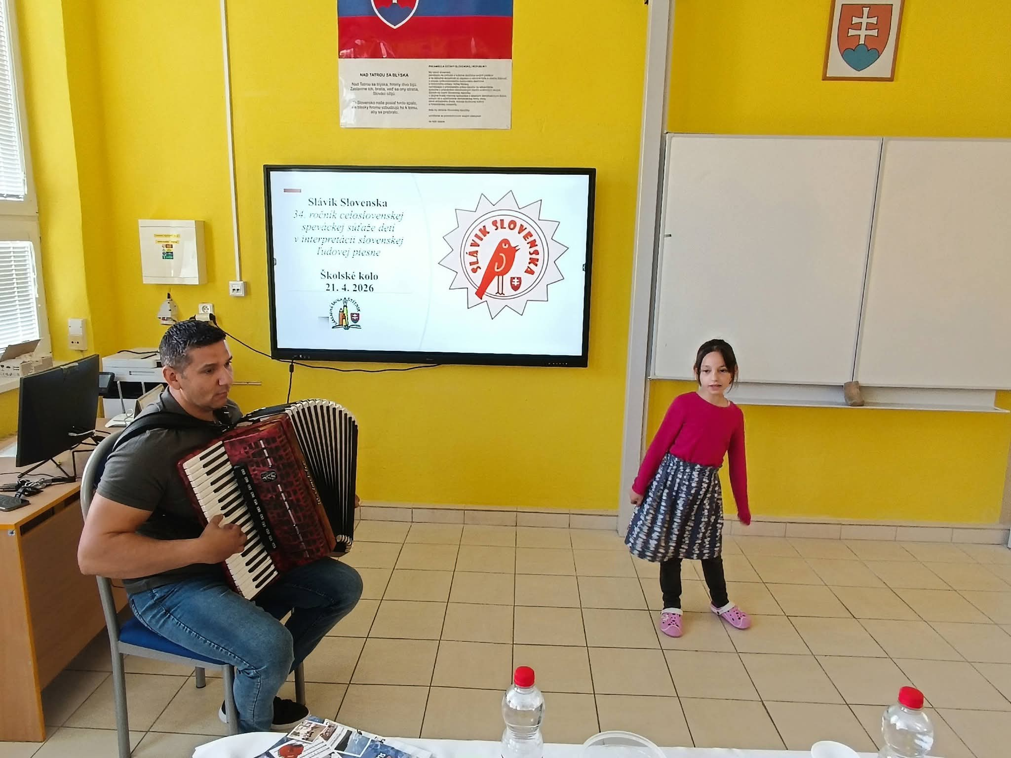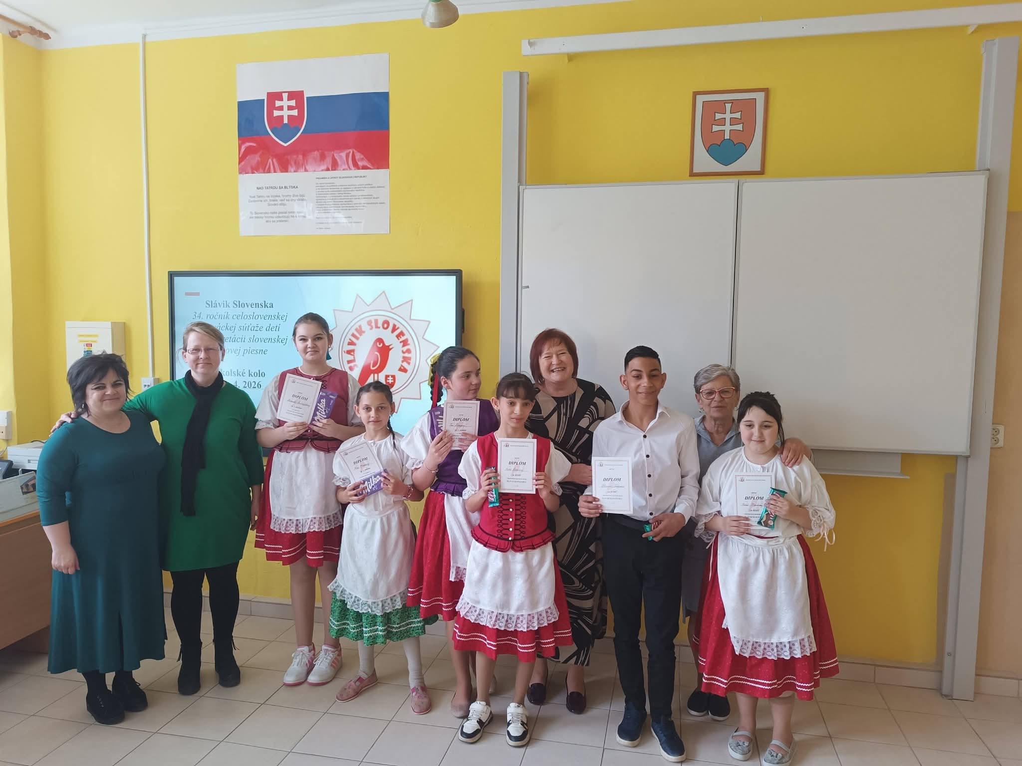 21.4.2026 sa naši žiaci zmenili na mladých slávikov a rozozvučali učebňu folklórnymi tónmi v školskom kole speváckej súťaže Slávik Slovenska. V porote sme mali vzácnu návštevu, bývalú pani riaditeľku Jarmilu Motúzovú. Na harmonike žiakov hudobne sprevádzal Ivan Hlaváč. Na každého žiaka čakala sladká odmena.