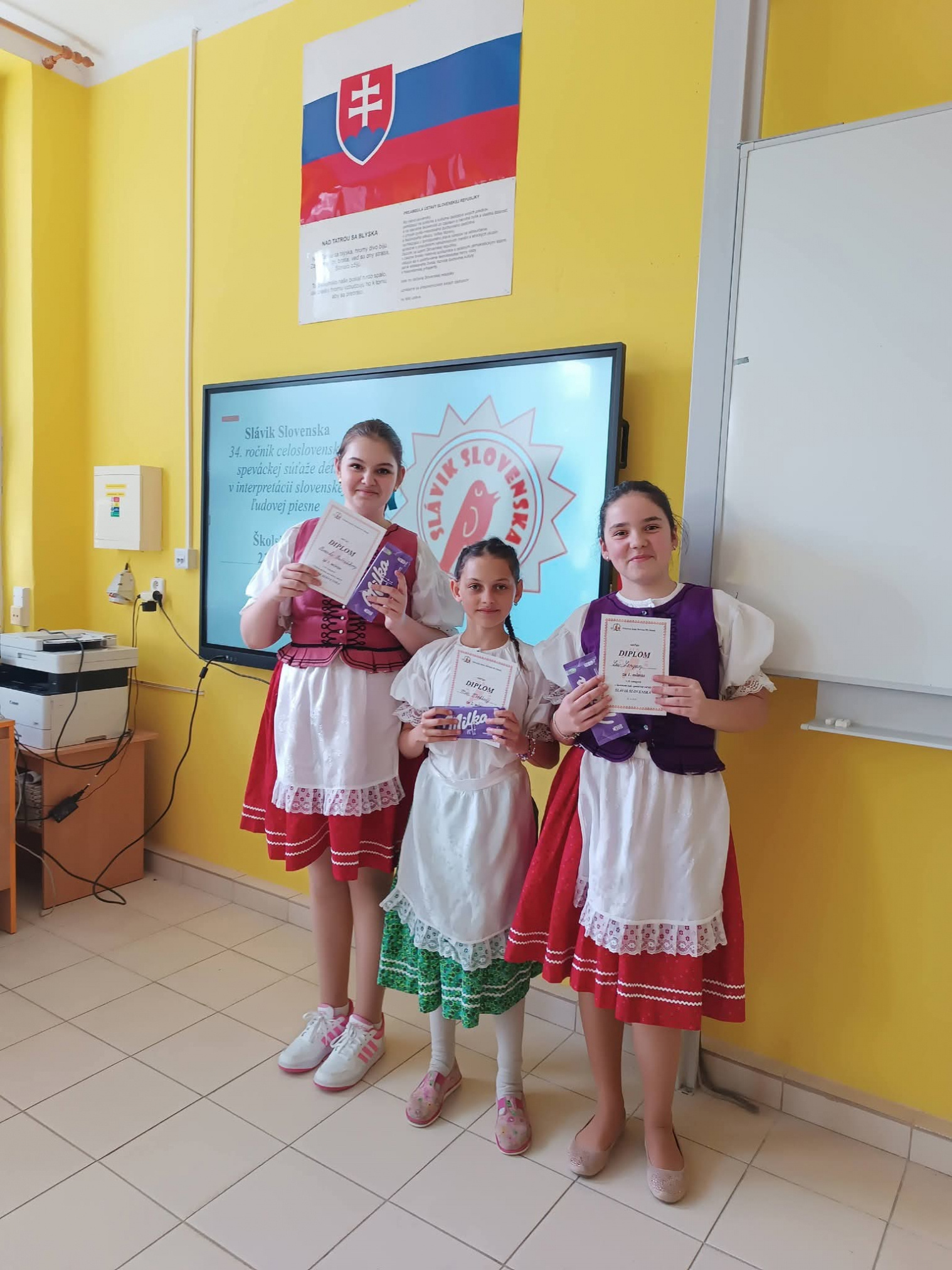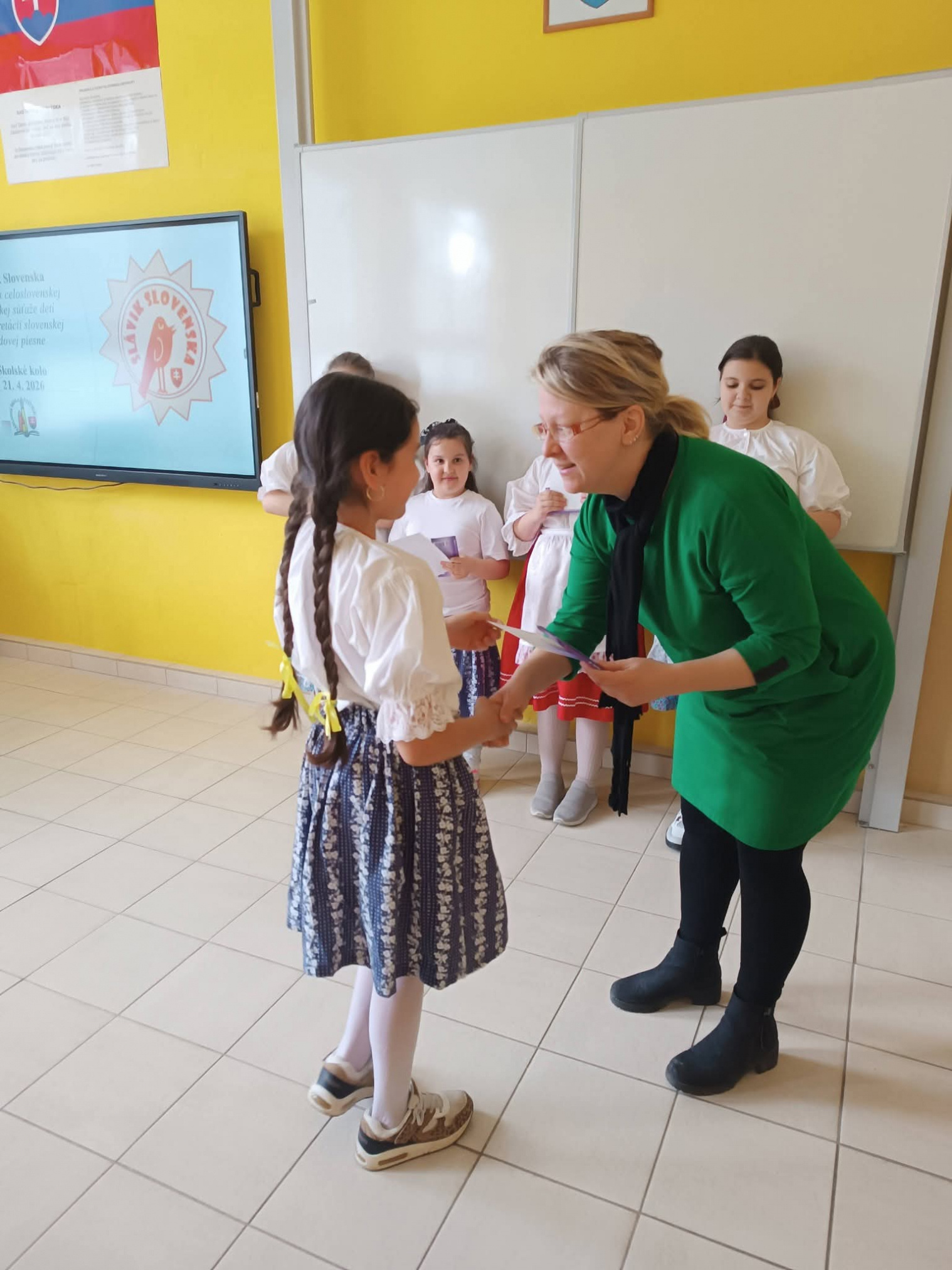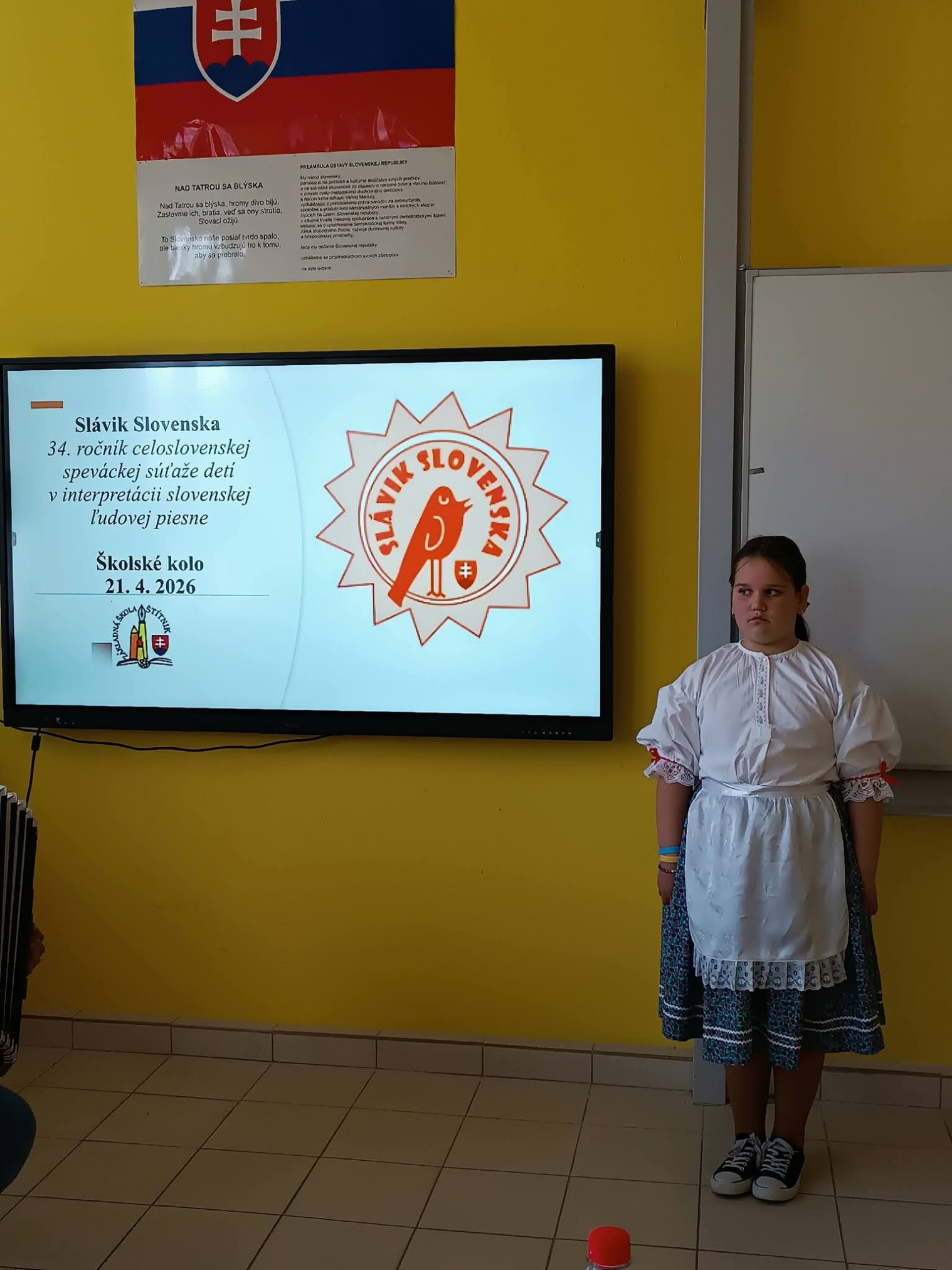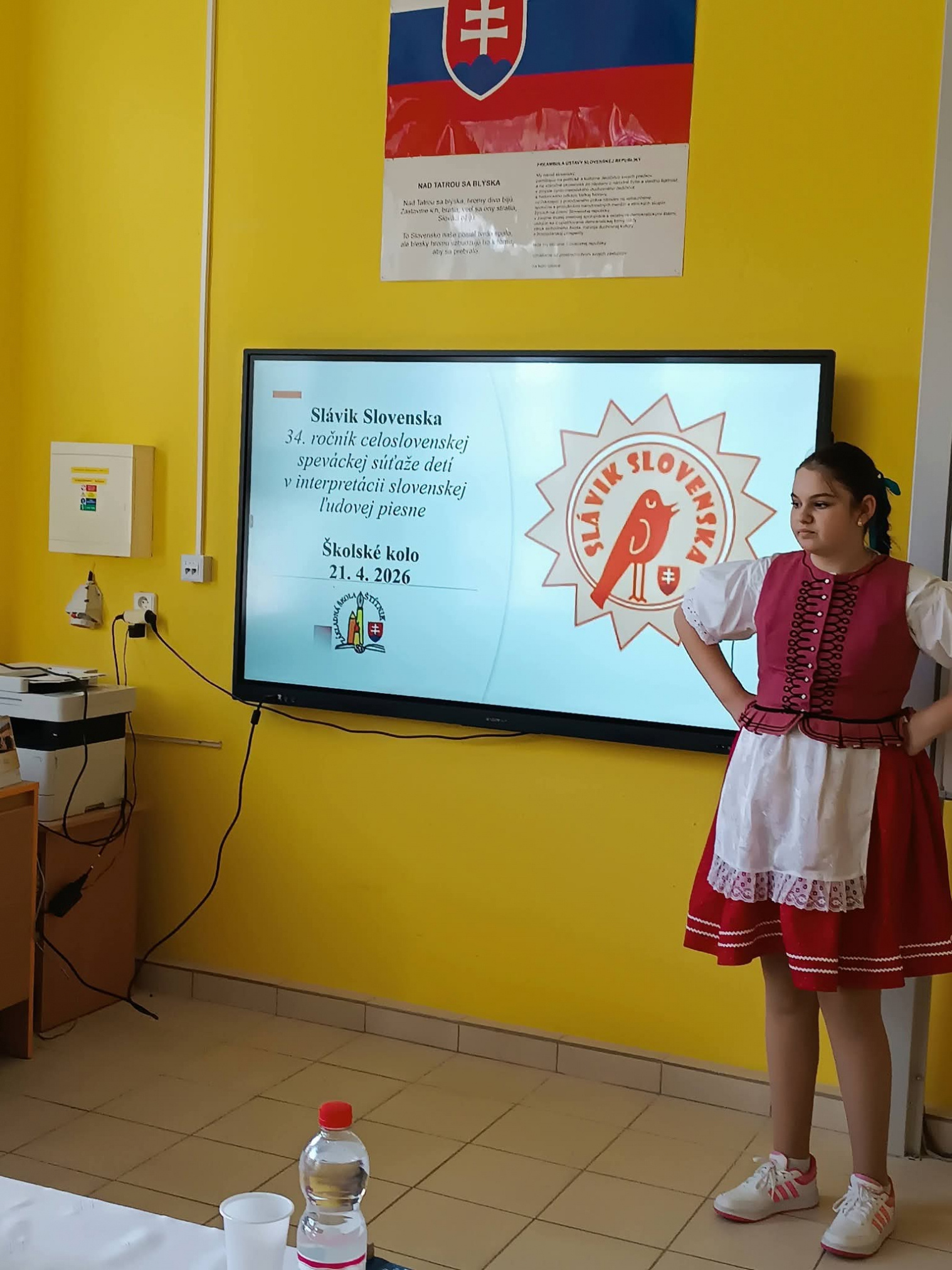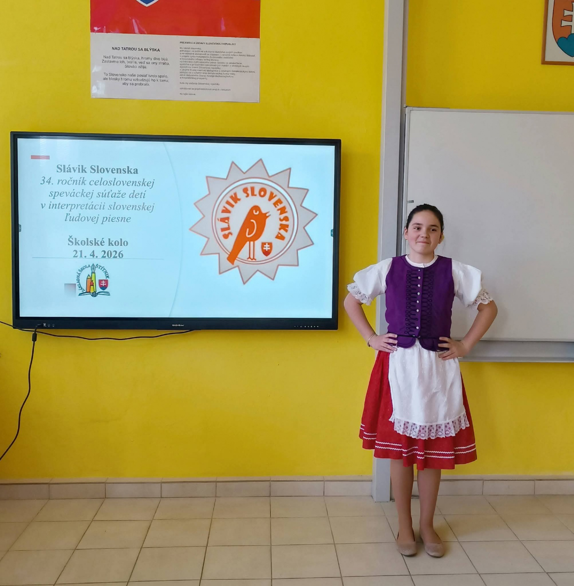 21.4.2026 sa naši žiaci zmenili na mladých slávikov a rozozvučali učebňu folklórnymi tónmi v školskom kole speváckej súťaže Slávik Slovenska. V porote sme mali vzácnu návštevu, bývalú pani riaditeľku Jarmilu Motúzovú. Na harmonike žiakov hudobne sprevádzal Ivan Hlaváč. Na každého žiaka čakala sladká odmena.
